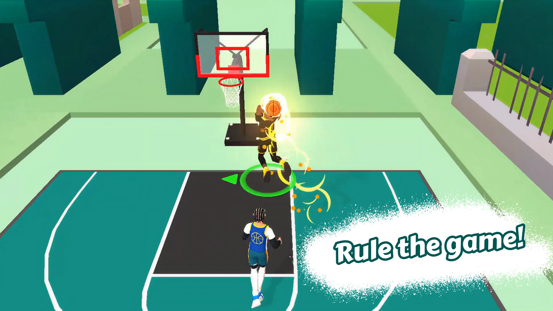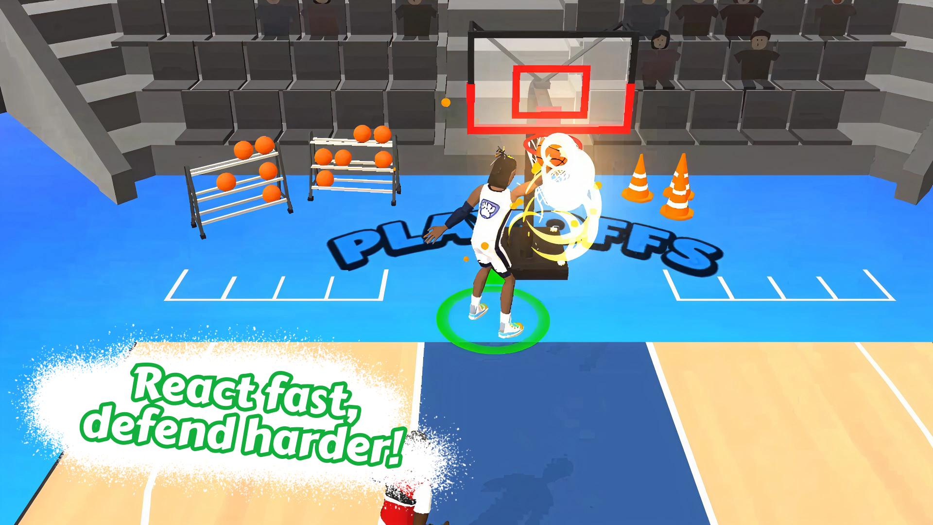- Sur mobile : Utilisez le joystick virtuel pour dribbler. Maintenez le bouton de tir pour marquer et appuyez sur le bouton de dunk lorsque vous êtes près du panier.