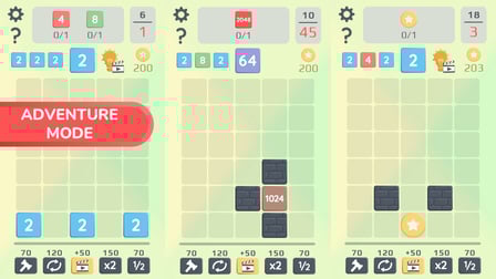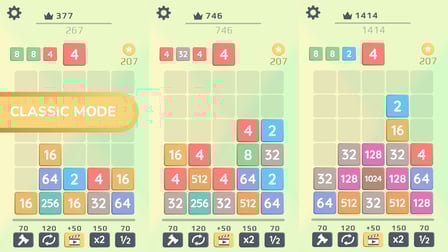Block Fusion propose trois modes passionnants : Aventures pour compléter des niveaux, Avancé pour un gameplay infini, et Classique pour une expérience de fusion plus pure.