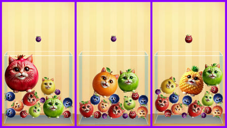 Instructions étape par étape pour jouer sur un mobile et sur un ordinateur : Pour jouer sur votre mobile, il vous suffit de toucher l'écran pour faire tomber des chats fruités dans la zone de fusion. Pour les utilisateurs d'ordinateur, utilisez votre souris pour cliquer et faire glisser les chats dans le conteneur. La fusion est automatique dès que des chats du même type sont regroupés !