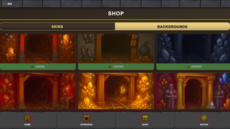 Commencez à jouer en tapant sur le mineur sur votre ordinateur ou appareil mobile. Chaque tap vous rapportera de l'argent, que vous pourrez ensuite réinvestir dans des améliorations. Explorez différents skins pour personnaliser l'apparence de votre mineur et profitez de thèmes variés de mines, améliorant ainsi votre expérience globale.