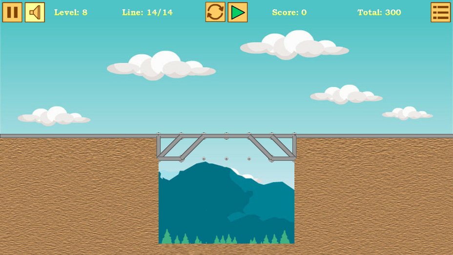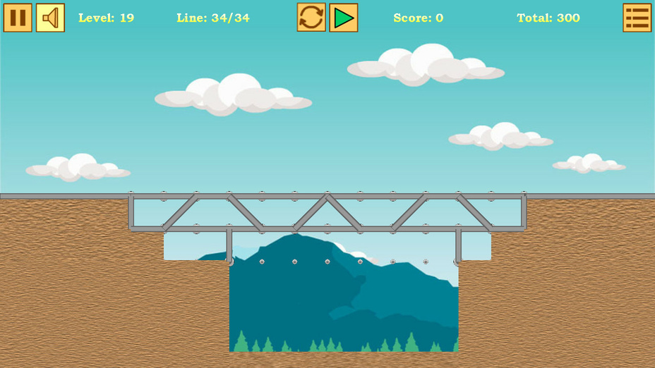 Construire un pont est un jeu simple à prendre en main, mais il offre des couches stratégiques profondes pour ceux qui aiment les bons défis. Vous utiliserez votre souris pour sélectionner et placer diverses pièces pour construire votre pont. Au fur et à mesure de votre progression, vous devrez tenir compte de la répartition du poids et de l'intégrité structurelle de vos conceptions. La réussite de chaque niveau implique de conduire un train sur votre pont sans qu'il ne s'effondre. Voici quelques trucs et astuces pour vous aider à maîtriser le jeu: