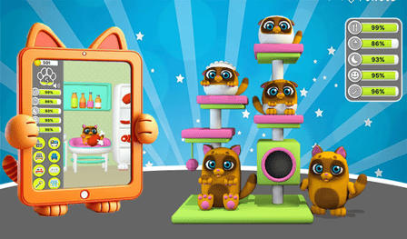 - Participez à des mini-jeux pour gagner des récompenses et améliorer l'environnement de votre chaton