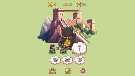 Tour de Chat enveloppe les joueurs dans une atmosphère charmante remplie d'adorables chats, de paysages colorés et de divers nombres qui donnent vie à la table de multiplication. Dans ce royaume confortable, vous aborderez chaque problème de multiplication de 2×2 à 9×9 sur huit niveaux attrayants, ce qui en fait un outil de formation polyvalent pour les apprenants de tous âges. Son rythme détendu permet aux joueurs d'absorber le matériel sans se sentir pressés, incarnant une approche de l'éducation sans stress.