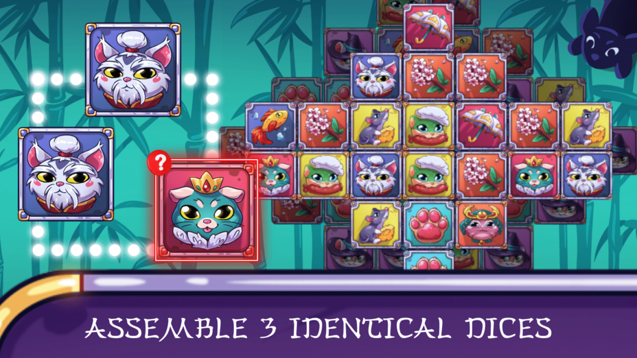 L'objectif principal est de dĂ©gager le terrain de jeu en faisant correspondre des tuiles avec la mĂȘme image par lots de trois.
