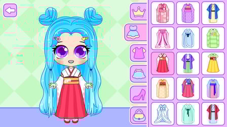 Encouragez la créativité de votre enfant en explorant diverses combinaisons de tenues colorées et d'accessoires fantaisistes au sein du jeu. Incitez-les à expérimenter : il n'y a pas de mauvais choix lorsqu'il s'agit de créer leurs personnages chibi uniques !