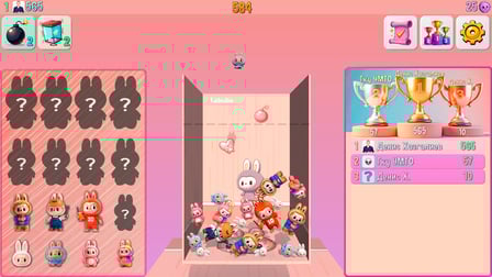 Si les Labubus s'empilent jusqu'à la ligne du haut, cela entraîne un game over, alors stratégez judicieusement pour les empêcher de s'accumuler trop haut !