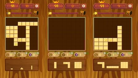 Pour commencer à jouer à Collect Blocks, il vous suffit de faire glisser et de déposer les blocs depuis la sélection sur le plateau de jeu. Votre objectif est de remplir des lignes complètes horizontalement ou verticalement sans laisser d'espaces vides. Quand une ligne est complète, elle disparaît, libérant de l'espace pour de nouveaux blocs. Restez concentré et planifiez à l'avance pour maintenir un plateau de jeu propre !