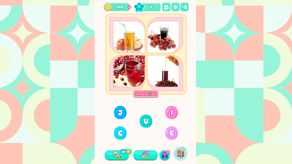 R: Vous gagnez des étoiles en devinant correctement les mots qui relient les quatre photos ensemble.