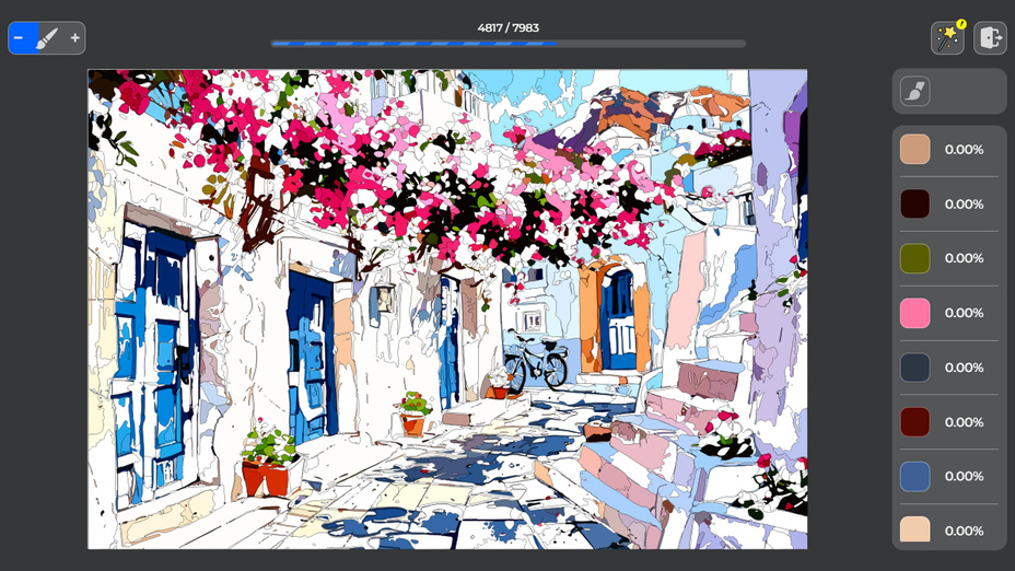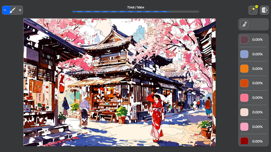 Utilisez simplement votre souris ou votre doigt pour appuyer ou cliquer sur les couleurs de la palette, puis sĂ©lectionnez n'importe quelle zone de l'image pour commencer Ă colorier! Chaque zone s'active dĂšs que vous choisissez une couleur, ce qui facilite la crĂ©ation de votre Ćuvre d'art.