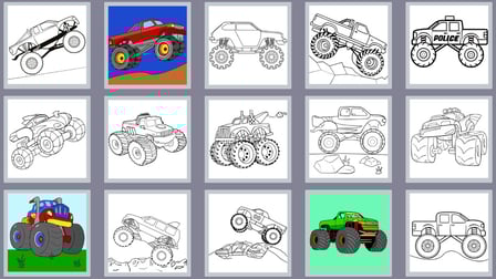 - Large choix de camions monstres à colorier