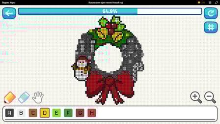 Cross Stitch: Christmas est un simulateur de broderie passionnant où vous pouvez plonger dans le monde de la couture créative. Parfait pour ceux qui aiment les puzzles et les coloriages, ce jeu vous invite à remplir les cellules par numéros, créant de belles œuvres d'art sur le thème de Noël. Jouez en ligne gratuitement sans avoir besoin de télécharger, et plongez - vous dans l'atmosphère relaxante et enrichissante de la couture. Avec une sélection de 40 superbes dessins triés par niveaux de difficulté, de débutant à avancé, vous pouvez perfectionner vos compétences et profiter de l'esprit festif. Que vous soyez un enfant ou un adulte, ce jeu promet des heures de plaisir et de stimulation mentale, ce qui le rend idéal pour tous ceux qui recherchent une expérience agréable et éducative.