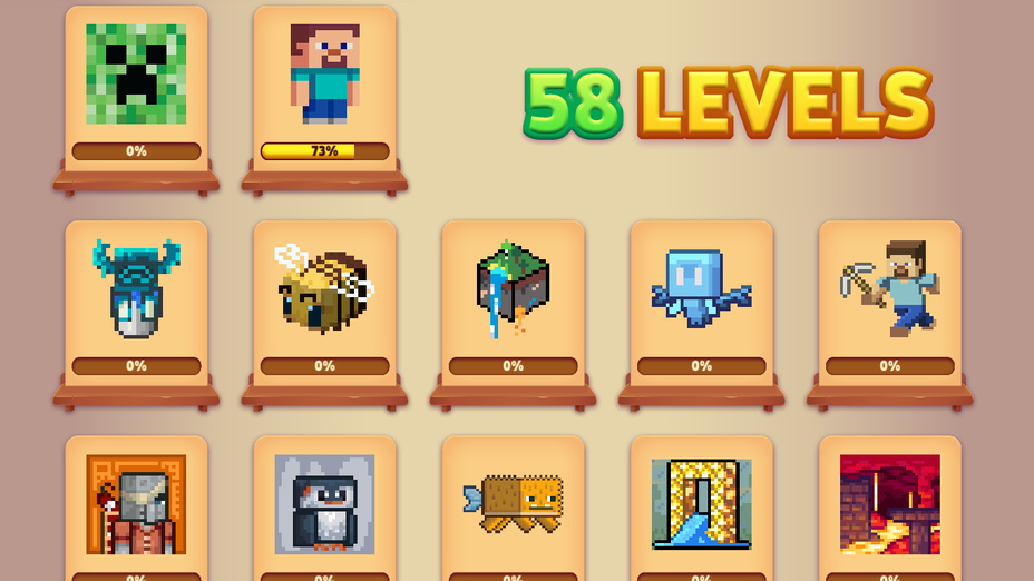 Dans Cross Stitching: Minecraft, vous deviendrez un brodeur qualifié chargé de compléter des motifs complexes. Vous rencontrerez une variété de niveaux de difficulté, de facile à difficile, chacun offrant des designs uniques sur le thÚme de Minecraft. Ce jeu propose un systÚme de résolution d'énigmes engageant qui captivera les jeunes esprits et les adultes. Sans limite d'ùge, c'est une expérience éducative et amusante parfaite pour tous les ùges. Relevez le défi de compléter les 58 dessins et d'aiguiser votre attention aux détails tout en profitant d'une activité paisible et créative.
