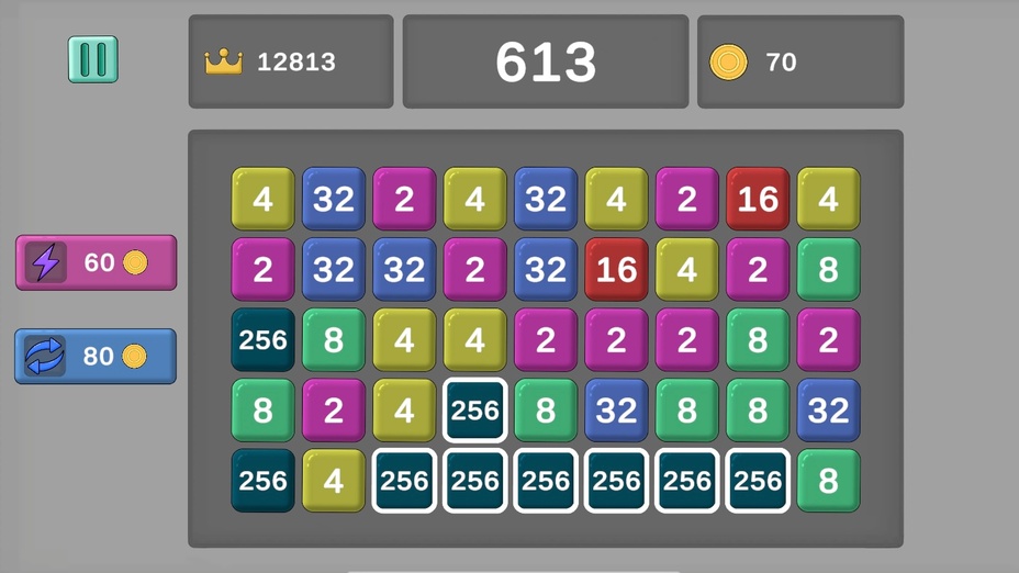 Obtenez un avantage concurrentiel en planifiant vos fusions à l'avance. Cherchez toujours des occasions de combiner efficacement les blocs, en préservant l'espace pour de nouvelles tuiles. Priorisez le maintien de blocs de plus grand nombre dans des zones séparées pour obtenir plus de points!