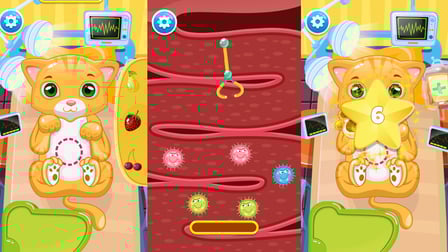 Soignez les chats! est un simulateur vétérinaire réconfortant et engageant où vous pouvez prendre soin de chats mignons. Le jeu propose différents niveaux, chacun présentant de nouveaux défis et énigmes qui nécessitent votre sens aigu de l'observation et de la résolution de problèmes. L'objectif principal est de diagnostiquer et de traiter les différentes affections dont souffrent les chats, en utilisant une gamme d'outils et de techniques médicales. Les graphismes charmants du jeu et ses adorables animations de chats en font une expérience délicieuse pour les joueurs de tous âges.
