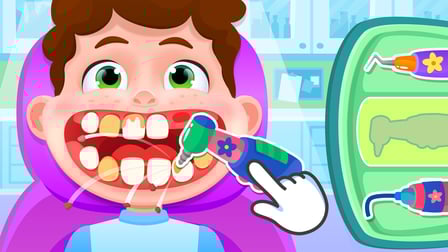 Jouer au dentiste pour les enfants et les tout-petits de 2 à 5 ans est simple et intuitif. Les enfants peuvent facilement comprendre les mécanismes du jeu avec un minimum de conseils. Le jeu consiste à utiliser divers outils de dentiste pour nettoyer et traiter les dents de différents patients animaux.