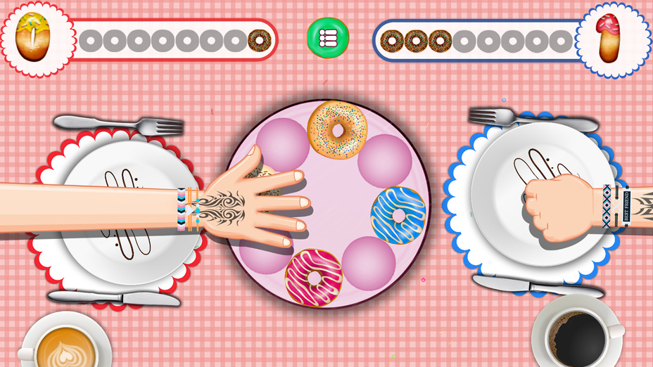 Donut Challenge est un jeu occasionnel passionnant où vous pouvez tester votre agilité et votre attention en saisissant les beignets tournants par leur partie médiane. Jouez en ligne gratuitement sans téléchargement et plongez - vous dans le monde vibrant de plaisir et d'excitation. Conçu pour deux joueurs, ce jeu offre une expérience palpitante où le premier à saisir 5 beignets sur un plateau tournant remporte le défi. Avec ses commandes simples et son gameplay dynamique, Donut Challenge est parfait pour les adolescents et ceux qui recherchent un tueur de temps rapide et addictif. Naviguez à travers les numéros tournants sur la plaque car ils peuvent modifier vos rondes de manière positive ou négative, ajoutant une touche au défi. Disponible sur les plates-formes de bureau et Android, ce jeu indépendant de haute qualité est sûr de divertir et d'engager les joueurs de tous âges.