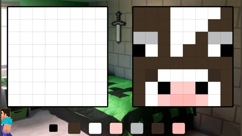 Vous pouvez dessiner divers personnages tels que Noob, Pro, Griefer, Steve, Enderman et bien d'autres des univers Minecraft et Roblox!
