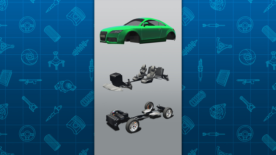 - Cliquez pour sélectionner et déplacer des pièces de voiture