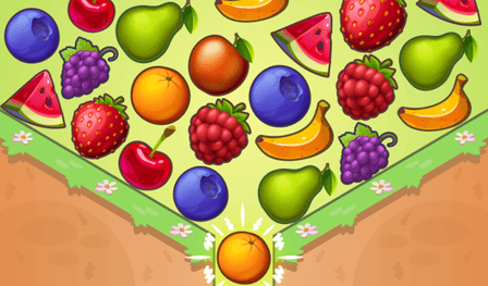 L'objectif : Vider l'écran des fruits. Votre mission est de faire tomber chaque morceau dans le réceptacle en bas. Lorsque deux fruits identiques se rencontrent à l'intérieur, ils disparaissent dans le panier. Concept simple. Exécution délicate. Un mauvais mouvement et le réceptacle déborde. Niveau terminé.