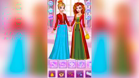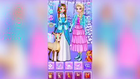 Entrez dans le monde magique de Elsa & Anna Frozen Dress Up: Princesse glacée, un jeu en ligne où vous devenez le styliste de mode pour deux sœurs bien-aimées. Ces filles de la reine des neiges Anna ont besoin de votre expertise en magie de relooking pour briller comme de vraies princesses. Choisissez parmi une gamme éblouissante de vêtements, de coiffures et d'options de maquillage dans le salon de mode princesse. Personnalisez tout leur look, jusqu'à leurs yeux, leur bouche, leurs sourcils et même leur teint! Avec autant de choix, chaque séance de coiffage ressemble à une nouvelle aventure. Et n'oubliez pas, chaque princesse a un animal de compagnie préféré qui attend de se joindre à la fête. Sera-ce un écureuil, un chien, un cerf ou même un bonhomme de neige? Le choix vous appartient! De plus, vous pouvez choisir l'arrière-plan parfait pour compléter la scène royale.