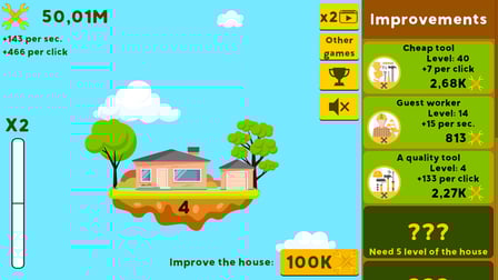 Les joueurs gagnent des points en cliquant pour rassembler des ressources, qui peuvent ensuite être utilisées pour améliorer leurs maisons et débloquer de nouvelles fonctionnalités.