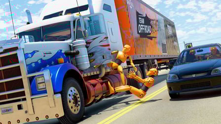 Le jeu présente une variété de véhicules, y compris des voitures de sport, des camions et des véhicules tout-terrain, chacun offrant une expérience de crash unique.