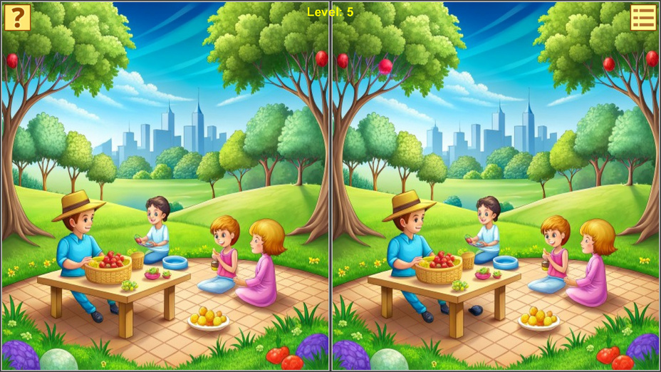 Find the Difference Master est un jeu de puzzle passionnant oĂč vous pouvez dĂ©fier votre attention aux dĂ©tails en trouvant des diffĂ©rences entre deux images. Jouez en ligne gratuitement sans tĂ©lĂ©chargement et plongez - vous dans le monde captivant des objets cachĂ©s. Ce jeu par navigateur est parfait pour ceux qui aiment un gameplay dĂ©contractĂ© Ă la fois amusant et stimulant pour le cerveau. Que vous soyez Ă la maison sur votre ordinateur de bureau ou en dĂ©placement avec votre appareil mobile, Find the Difference Master est facilement accessible sur toutes les plateformes, y compris Android et iOS. Plongez dans une expĂ©rience relaxante mais stimulante qui aiguise votre logique et vos capacitĂ©s d'observation Ă chaque niveau que vous terminez.
