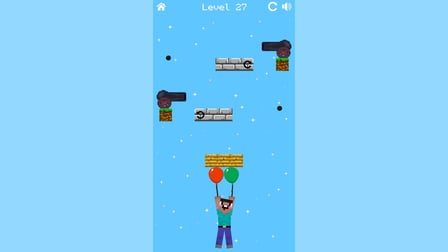 Dans Vole, Noob, Vole!, vous prendrez le contrôle de Noob pour l'aider à monter à travers 35 niveaux difficiles. Chaque niveau présente un puzzle unique se déroulant à divers endroits avec différents adversaires et mécanismes à surmonter. Vous devrez casser des blocs, protéger Noob des boulets de canon et utiliser des ventilateurs pour guider les ballons dans la bonne direction. Conçu pour tous les âges, ce jeu teste votre pensée logique et offre une expérience enrichissante lorsque vous terminez chaque niveau et prouvez votre habileté à aider Noob à atteindre le sommet.