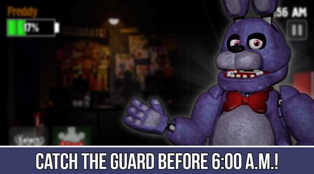 Jouer FNAF 1: Simulateur d'Animatronique est simple: choisissez votre personnage animatronique préféré sur votre téléphone ou ordinateur. ContrÎlez votre personnage à l'aide de commandes tactiles ou clavier/souris. Déplacez-vous dans la pizzeria faiblement éclairée et soyez prudent lorsque vous vous rapprochez du bureau du gardien. Votre objectif est d'atteindre la garde avant que l'horloge n'atteigne 6 heures du matin, en utilisant efficacement les mouvements stratégiques et les améliorations d'objets.