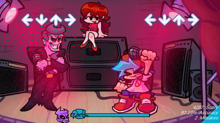 Friday Night Funkin Animania est un jeu d'arcade décontracté exaltant où vous pouvez mettre en valeur vos compétences rythmiques et améliorer vos prouesses musicales. Jouez en ligne gratuitement sans téléchargement et plongez - vous dans le monde vibrant et dynamique des batailles de rap. Engagez-vous dans des confrontations palpitantes en fabriquant des flèches assorties à votre style, affrontez le père de votre petite amie dans une série de trois chansons électrisantes. Que vous choisissiez d'incarner le père ou le personnage principal, connu sous le nom de petit ami, l'excitation ne s'arrête jamais! Personnalisez votre expérience de jeu avec divers paramètres, y compris la couleur de la flèche et les ajustements de position, rendant chaque session de jeu unique. Si le défi vous semble insurmontable, passez en "mode facile" pour une expérience plus fluide. Prouvez votre courage en tant que rappeur ultime dans cette captivante aventure en ligne!