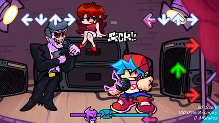 Dans Friday Night Funkin Animania, prenez le contrôle du petit ami ou du père pour atteindre la suprématie musicale à travers d'intenses batailles de rap. Rencontrez trois chansons énergiques à travers différents niveaux et lieux, face à divers adversaires qui mettront à l'épreuve votre rythme et votre agilité. Le jeu dispose d'un système de personnalisation innovant qui vous permet d'adapter les paramètres à votre convenance, améliorant ainsi votre expérience de jeu globale. Adapté aux adolescents et aux fans de jeux de rythme, ce jeu allie plaisir et défi dans un environnement transparent basé sur un navigateur. Libérez votre maître du rythme intérieur et devenez célèbre en conquérant chaque confrontation musicale!