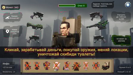 Pour amĂ©liorer votre expĂ©rience de jeu, concentrez-vous sur l'amĂ©lioration de vos compĂ©tences dĂšs que possible. Cela garantit que votre pouvoir de clic augmente, vous permettant de dĂ©truire les toilettes plus efficacement. Gardez un Ćil sur les points nĂ©cessaires pour dĂ©bloquer diffĂ©rents modes et visez Ă dĂ©truire autant de toilettes que possible Ă chaque session !