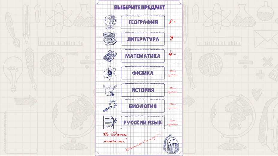 Êtes-vous prêt à mettre vos connaissances à l'épreuve ultime ? The Test is a Double or an Excellent Student vous invite à vous engager dans une aventure passionnante de questions et réponses qui non seulement met au défi votre intellect mais récompense également votre apprentissage. Ce jeu en ligne gratuit offre une occasion unique aux joueurs d'explorer divers sujets, incluant les mathématiques, la littérature, l'histoire, la biologie, la physique, la géographie et la langue russe. Votre objectif est clair : répondre correctement aux questions pour remplir votre carnet de notes de mentions brillantes et obtenir votre statut d'« Excellent Élève ».