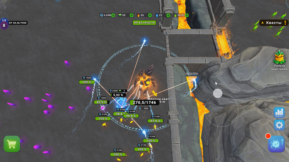 Jouer à Io's Quest est simple et excitant. Utilisez les flÚches pour vous déplacer ou faites glisser sur votre mobile. Engagez les ennemis en cliquant ou en touchant pour exploiter les capacités magiques d'Io. Collectez des ressources vitales pour améliorer vos compétences et élargir vos opérations agricoles.