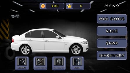 • Cliquez pour interagir avec le garage et améliorer votre voiture.