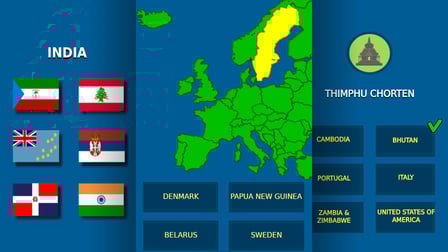 Geography Quiz est un jeu de quiz éducatif passionnant où vous pouvez mettre à l'épreuve vos connaissances en géographie mondiale. Jouez en ligne gratuitement sans téléchargement et plongez dans un monde de drapeaux, de capitales de pays, de cartes du monde, de monuments célèbres et de devises étrangères. Le quiz de géographie propose des centaines de questions et d'images, ce qui le rend idéal pour apprendre de nouveaux faits sur les pays et les continents. Ce jeu est parfait pour les joueurs de tous âges qui souhaitent aiguiser leur esprit et améliorer leurs capacités de logique et de mémoire. Que vous préfériez jouer sur un ordinateur de bureau ou des appareils Android, Geography Quiz est accessible à tout moment, n'importe où. Avec son système de classement attrayant, vous pouvez comparer vos meilleurs scores avec vos amis et d'autres joueurs, ce qui en fait une expérience compétitive et amusante.