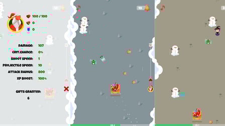 Restez agile et astucieux ! Pour maĂźtriser Gifts Giveaway, concentrez-vous sur lâĂ©vitement des boules de neige tout en visant les boosts magiques qui vont suralimenter vos armes, vous permettant de tenir tĂȘte aux hordes implacables !