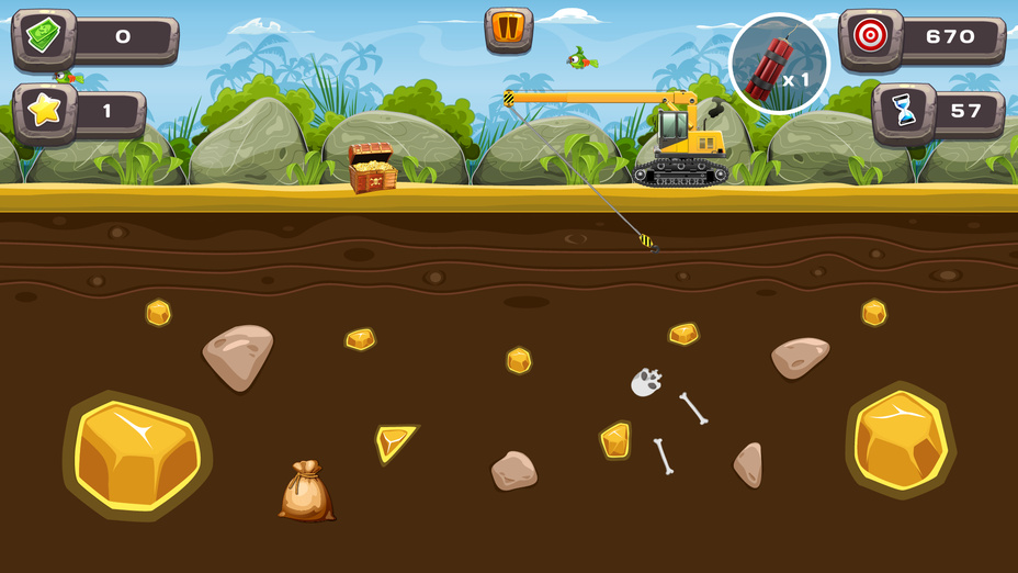 Commencez votre aventure en lançant Mineur D'Or sur votre appareil. Utilisez la griffe pour récupérer des trésors de la terre. Ajustez l'angle et le timing de votre griffe pour arracher les objets les plus gros et les plus précieux. Au fur et à mesure que vous progressez, les niveaux deviendront plus difficiles, nécessitant une réflexion rapide et des mouvements précis pour éviter les obstacles et collecter la quantité ciblée de trésors.
