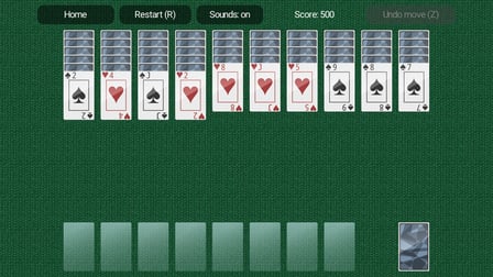 Plongez dans le bon Vieux Spider Solitaire avec facilitĂ©. L'objectif est de dĂ©placer toutes les cartes en sĂ©quences du Roi Ă l'As de la mĂȘme couleur. Commencez avec un costume pour maĂźtriser les bases avant de passer Ă des difficultĂ©s plus difficiles. Utilisez la rĂ©flexion stratĂ©gique pour obtenir les meilleurs rĂ©sultats et maximiser votre score.
