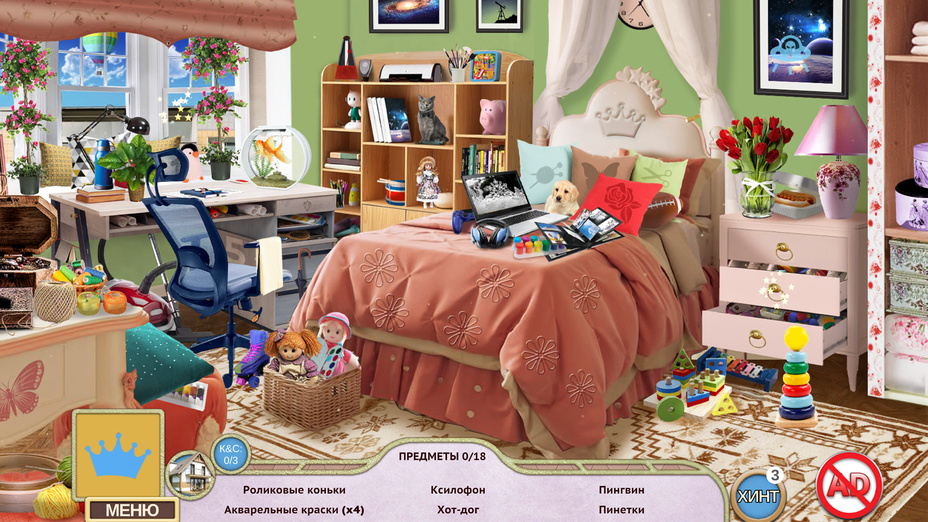 Dans Hidden Objects: Sweet Home, vous prendrez le contrĂŽle de vos talents d'observation pour atteindre l'objectif principal de trouver des objets cachĂ©s dans divers endroits. Vous rencontrerez de nombreux lieux uniques, des Ă©nigmes captivantes et un systĂšme de personnalisation innovant qui vous permettra de personnaliser votre espace de jeu. Ce jeu cible les joueurs occasionnels de tous Ăąges qui aiment les Ă©nigmes d'entraĂźnement cĂ©rĂ©bral et un gameplay relaxant. Sans limite d'Ăąge, il est parfait pour tous ceux qui cherchent Ă se dĂ©tendre et Ă profiter d'une expĂ©rience de jeu tranquille. Le jeu est conçu pour ĂȘtre accessible sur les plates-formes de bureau, Android et iOS, vous permettant de jouer n'importe oĂč, n'importe quand. Objets cachĂ©s: Sweet Home combine le frisson de la dĂ©couverte avec le confort d'un cadre douillet, ce qui en fait un choix idĂ©al pour les joueurs Ă la recherche d'un mĂ©lange de dĂ©tente et de dĂ©fi.