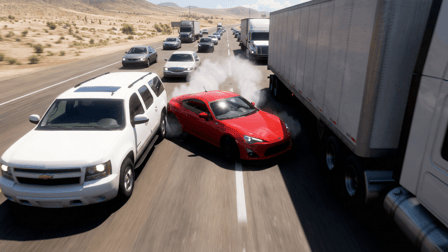 Ignorez les freins à moins d'être sur le point de mourir. Engagez-vous dans chaque changement de voie — l'hésitation provoque des accidents. Visez les espaces entre les groupes de véhicules NPC. Les camions se déplacent plus lentement mais offrent d'énormes bonus de points pour les passages proches. Passez à la 2ème vitesse autour de 150 km/h pour une vitesse maximale sans perdre le contrôle. Le trafic autoroutier ne pardonne pas les erreurs. Réagissez ou redémarrez.