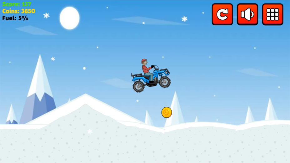 Vivez le frisson de Courses de CĂŽte d'Hiver pendant que vous manĆuvrez votre vĂ©hicule sur des collines intimidantes et des terrains difficiles. Le paysage hivernal captivant prĂ©sente des flocons de neige scintillants et des dĂ©cors confortables, tandis que les divers choix de vĂ©hicules â des voitures de sport aux supercars â promettent une expĂ©rience de conduite unique! AmĂ©liorez vos compĂ©tences en faisant la course contre le temps et les limites de carburant.