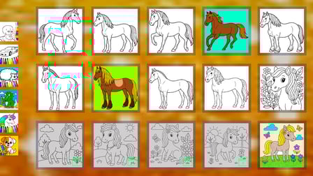 Pour commencer à jouer, sélectionnez une image de cheval dans la galerie. Choisissez vos couleurs et vos outils, puis appuyez ou cliquez sur les taches que vous souhaitez colorier. L'interface intuitive permet aux jeunes artistes de naviguer facilement et de créer leurs œuvres d'art uniques, que ce soit en utilisant un téléphone ou ordinateur.