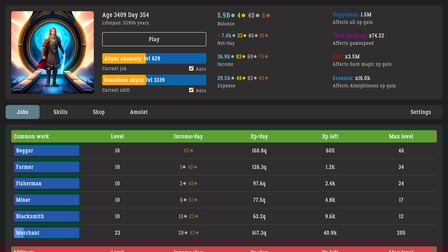 Immortal Knight est un jeu de simulation de vie exaltant dans lequel vous pouvez vous lancer dans un voyage épique pour gravir les échelons sociaux et professionnels dans un monde médiéval fantastique. Sans inscription ni téléchargement, vous pouvez plonger gratuitement dans cette aventure basée sur un navigateur et découvrir des possibilités infinies sur votre ordinateur de bureau, votre appareil Android ou iOS. Alors que vous partez d'humbles débuts en tant que mendiant, vos choix détermineront votre chemin vers la grandeur. Choisirez - vous la vie simple d'un roturier, poursuivrez-vous une carrière militaire ou vous plongerez-vous dans les arts arcaniques dans une académie de magie? La décision vous appartient lorsque vous naviguez dans ce jeu indépendant de haute qualité, parfait pour tuer le temps pour ceux qui aiment les simulations de vie fantastiques.