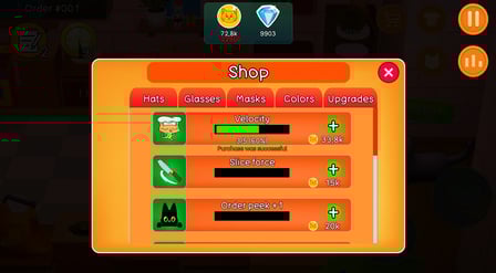 Vous pouvez gagner des piÚces et des gemmes en complétant des commandes. Les gemmes sont attribuées pour les commandes assemblées correctement !