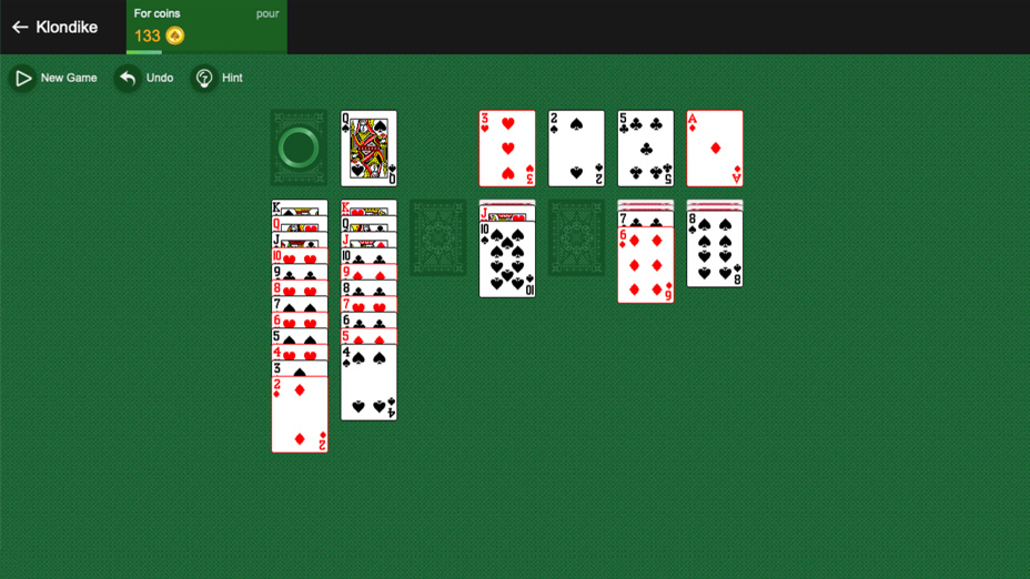 Jouer Ă Klondike Solitaire est simple, que ce soit sur un ordinateur de bureau ou un appareil mobile. Les joueurs peuvent dĂ©placer des cartes en cliquant et en les faisant glisser vers l'emplacement souhaitĂ©. Pour piocher des cartes de la pioche, cliquez simplement sur la pile pour rĂ©vĂ©ler une ou trois cartes supplĂ©mentaires, selon les paramĂštres du jeu. Le jeu peut ĂȘtre jouĂ© Ă la fois en mode plein Ă©cran et en mode fenĂȘtrĂ© standard, offrant une flexibilitĂ© Ă tous les joueurs.