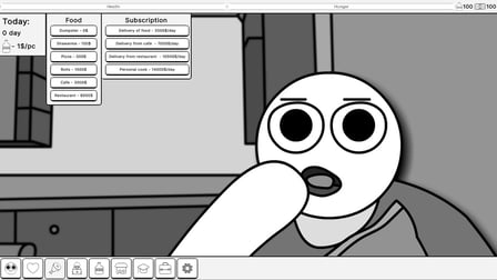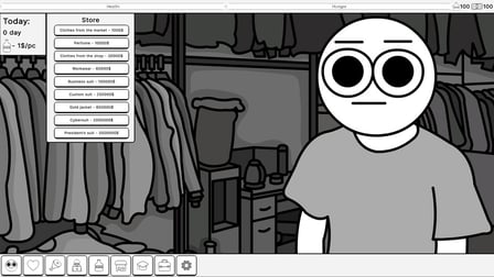 Pour contrôler votre personnage, il vous suffit de cliquer ou d'appuyer sur les divers éléments interactifs. Des actions comme ramasser des bouteilles, acheter des articles ou améliorer votre éducation nécessitent juste quelques frappes rapides. Gardez un œil sur vos statistiques de faim, de finances et de santé - elles affectent directement votre capacité à naviguer dans votre vie.