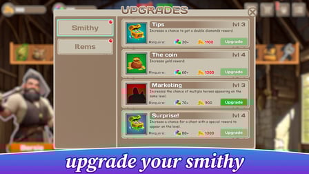 Entrez dans la forge de Bersie, un royaume rempli d'objets chaotiques mais fantaisistes qui attendent d'être organisés. Les visuels époustouflants et la musique relaxante créent une atmosphère apaisante pendant que vous mettez de l'ordre dans la discorde. Au fur et à mesure que vous progresserez dans les niveaux, vous rencontrerez des personnages attachants et découvrirez leurs histoires pendant que vous les aiderez à trier leur équipement pour les aventures à venir.