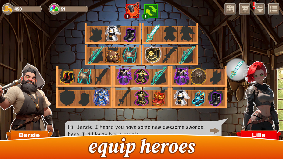 Entrez dans la forge de Bersie, un royaume rempli d'objets chaotiques mais fantaisistes qui attendent d'ĂȘtre organisĂ©s. Les visuels Ă©poustouflants et la musique relaxante crĂ©ent une atmosphĂšre apaisante pendant que vous mettez de l'ordre dans la discorde. Au fur et Ă mesure que vous progresserez dans les niveaux, vous rencontrerez des personnages attachants et dĂ©couvrirez leurs histoires pendant que vous les aiderez Ă trier leur Ă©quipement pour les aventures Ă venir.