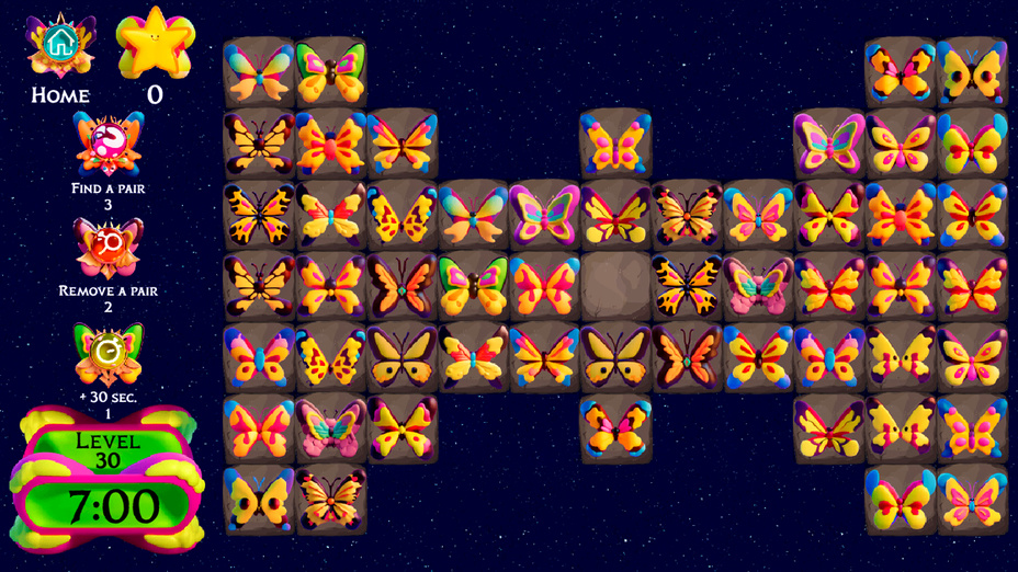 Plongez dans le monde enchanteur de Mahjong Solitaire-Connexion Papillon, oĂč vous pourrez profiter d'un dĂ©licieux voyage rempli de beaux papillons. Ce jeu en ligne offre une touche unique au genre classique du Mahjong, offrant une expĂ©rience engageante aux joueurs de tous Ăąges. Que vous soyez sur votre tĂ©lĂ©phone ou sur l'ordinateur, prĂ©parez-vous Ă collectionnez des papillons, gagnez des Ă©toiles et dĂ©couvrez de nouvelles espĂšces dans ce jeu visuellement attrayant. Les couleurs vives et les motifs complexes entraĂźneront non seulement votre concentration, mais affineront Ă©galement votre perception visuelle.